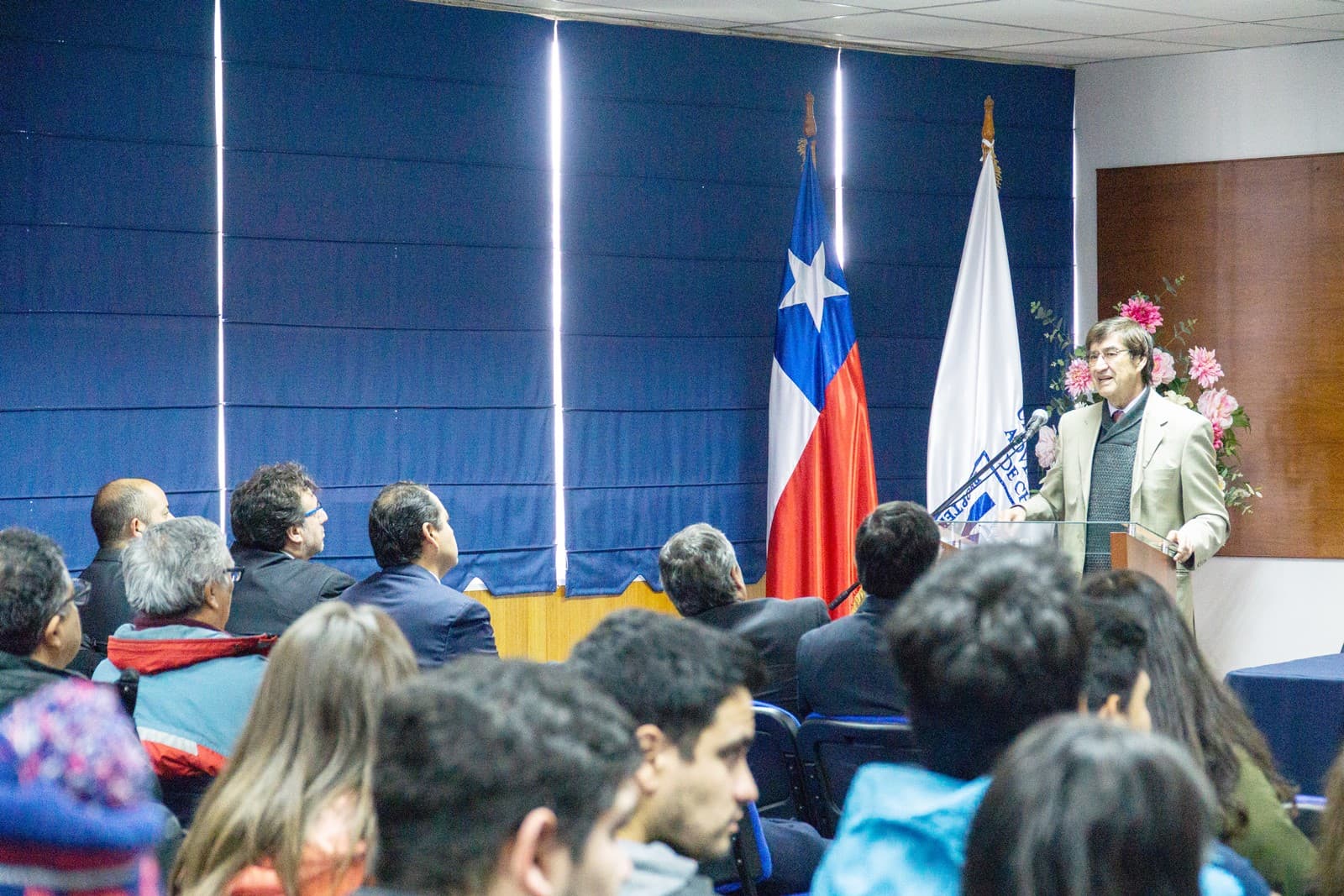 Estuvieron presentes en la ocasión el vicerrector Académico, Sr. Ramón Pérez; el vicerrector financiero, Sr. Claudio Pardo; el vicerrector de Desarrollo Estudiantil, Sr. Hermann Moyano; y el vicerrector de Vinculación con el Medio y Relaciones Estratégicas, Sr. Antonio Parra.