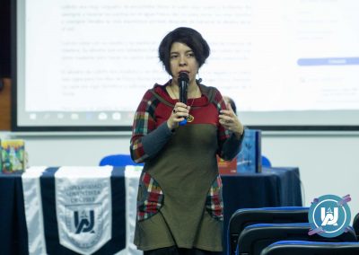 Lila Calderón, presentó sobre la construcción de los personajes de literatura infantil nacional, tratando temas vigentes como el bullying, la inmigración, la donación de órganos, la solidaridad, entre otros. Además, se refirió a la importancia de que los lectores se identifiquen con los cuentos y a la vez que los padres acompañen en la lectura y puedan discutir en familia los distintos temas del quehacer cotidiano.