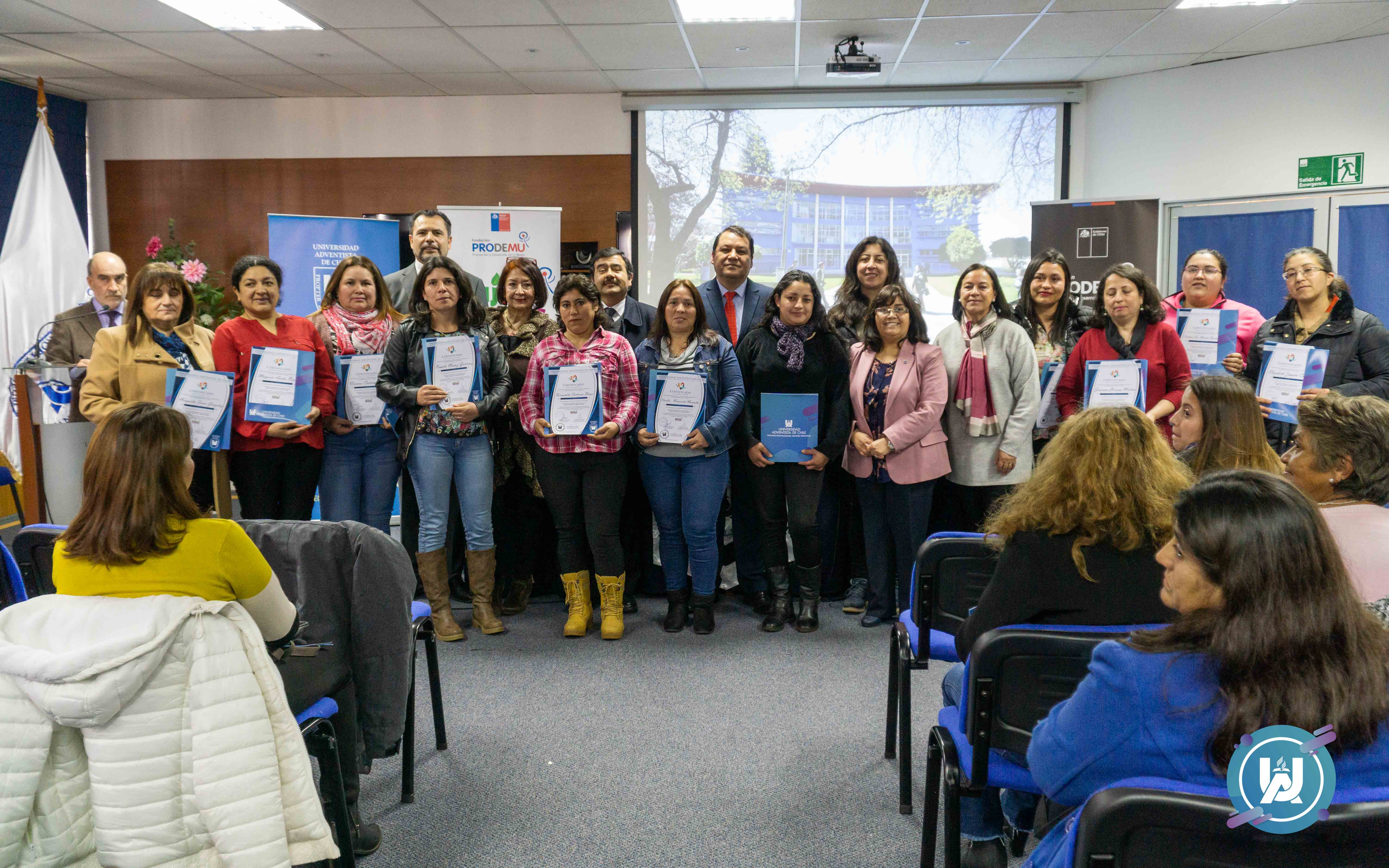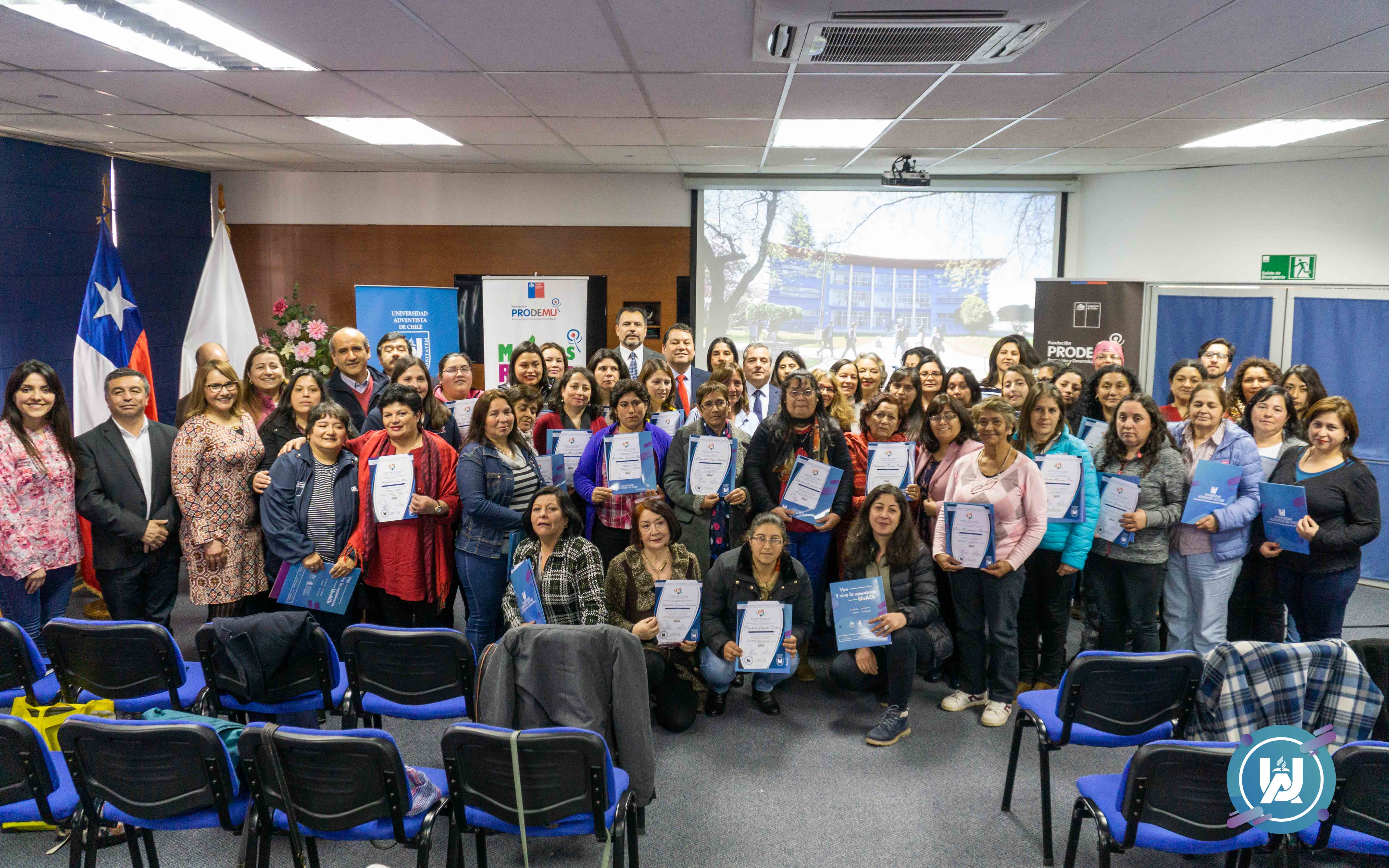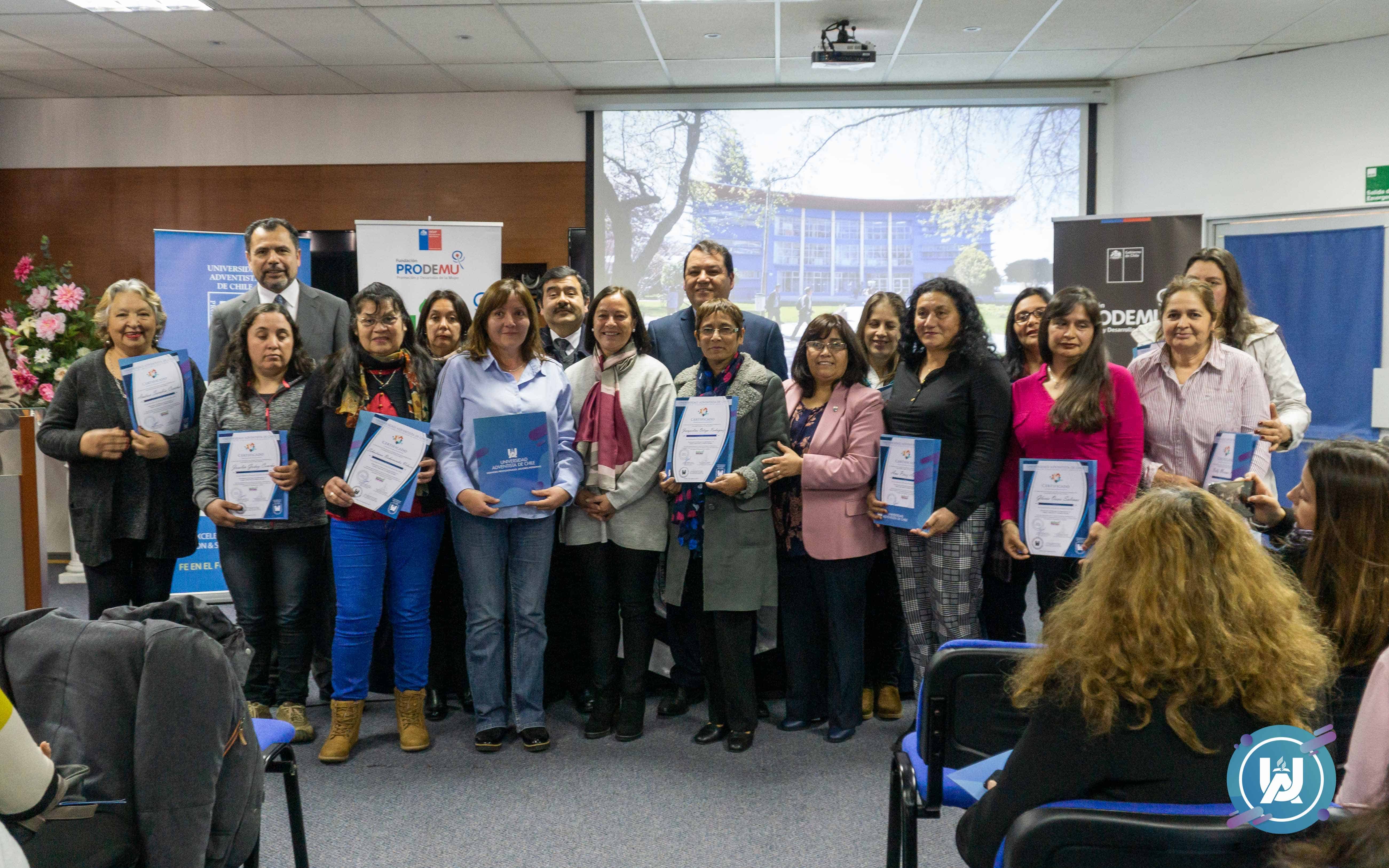 El día 21 de agosto, en el auditorio de la biblioteca institucional, culminó el proyecto de VcM denominado: “Potenciando el liderazgo, la organización y el trabajo colaborativo con mujeres rurales”, el cual nació de la firma de un convenio de colaboración entre Prodemu y la UnACh, las capacitaciones se desarrollaron en las dependencias de la Universidad Adventista de Chile.