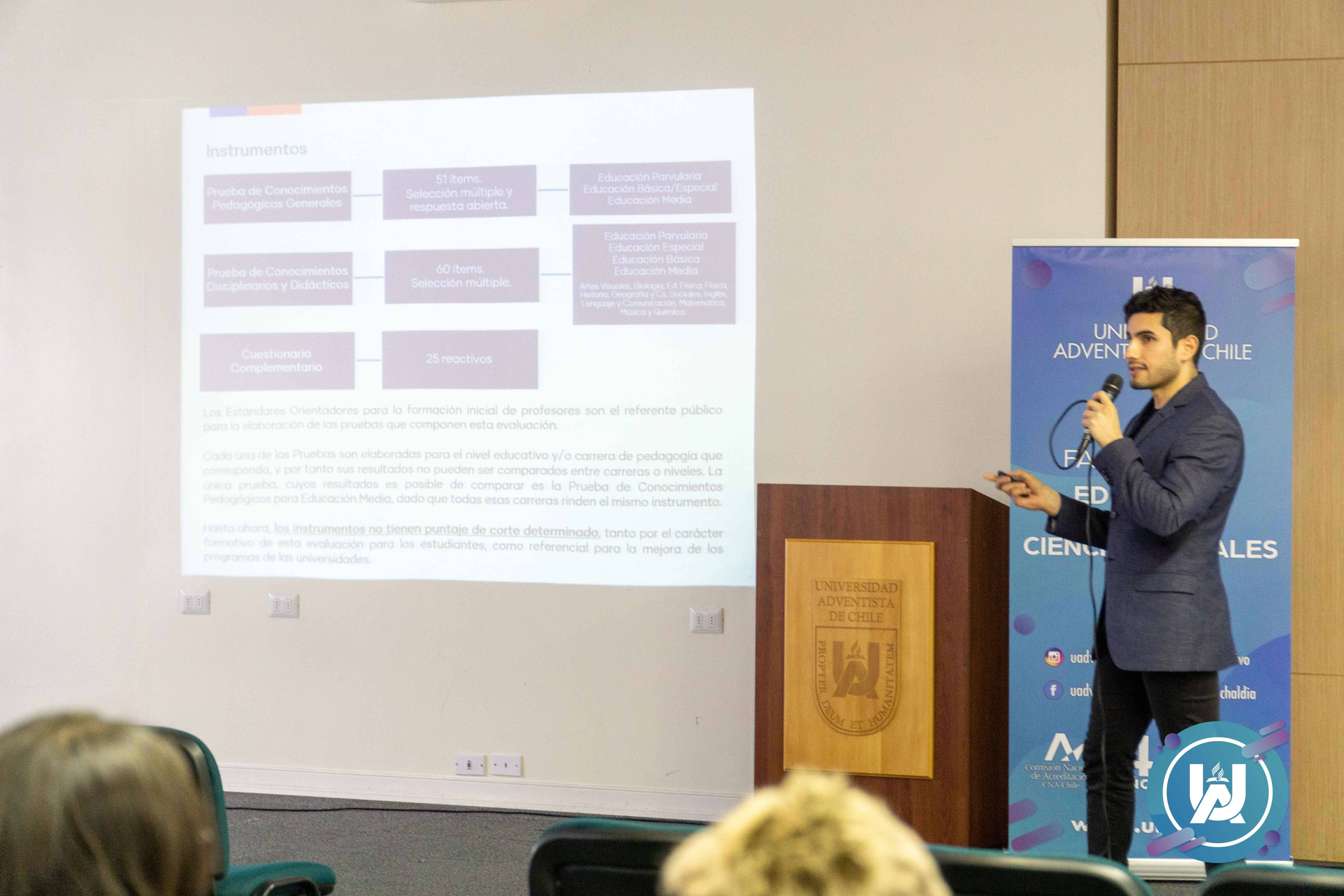 En dicha jornada, Fabián Valdebenito, encargado del área de Formación Inicial Docente del Centro de Perfeccionamiento, Experimentación e Investigaciones Pedagógicas (CPEIP), dependiente del Ministerio de Educación, expuso los resultados institucionales de nuestra casa de estudio, y también realizó un análisis por carreras, tanto de la prueba de conocimientos pedagógicos, como la de conocimientos disciplinarios.