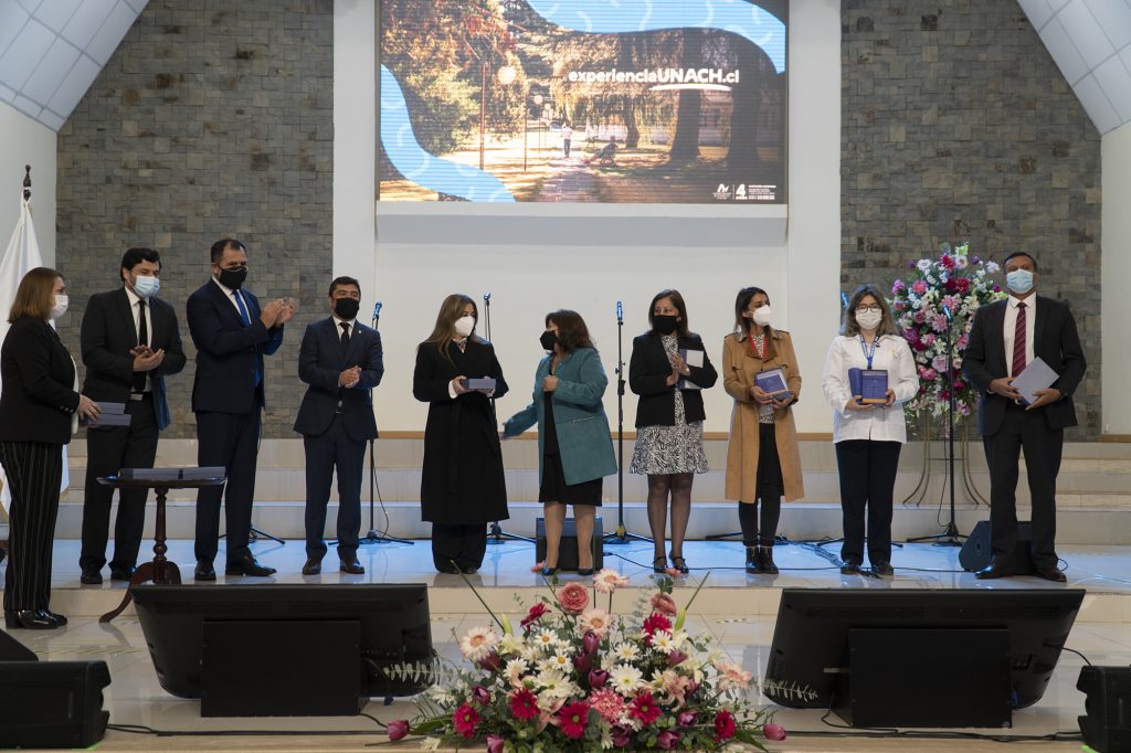 Inmediatamente, después, se realizó el reconocimiento por parte de la universidad de los socios estratégicos de las facultades que la integran, entre ellos la Sra. Rosa Aguirre C., Ministra de la Corta de Apelaciones de Valparaíso, la Sra. Mariela Fernández, Directora Técnica de Política Regional Docente, la Sra. Jennifer Lagos P., Encargada Comunal Jefas de Hogar de la Comuna de Chillán Viejo, la Sra. Claudia Chacana, Directora del Departamento de Salud de la Municipalidad de San Nicolás, y por último, al Sr. Claudio Pardo L., Secretario del Directorio de la UNACH.