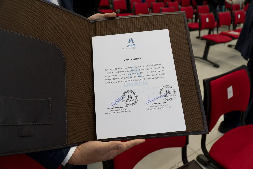 El evento, finalizó, con la firma de inicio del año académico 2022, por parte del la Vicerrectora Académica y el Secretario General de la Universidad Adventista de Chile.
