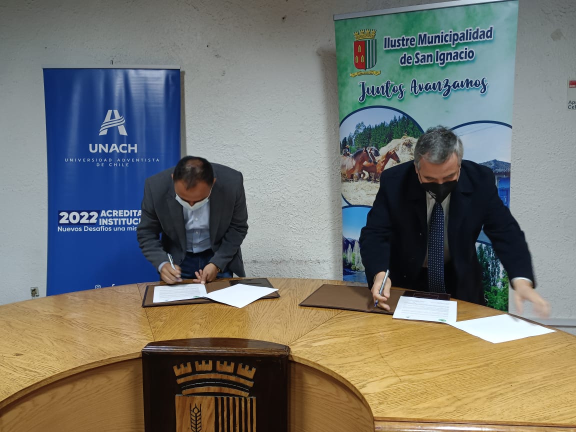 El lunes 22 de agosto, se realizó la firma de un convenio de colaboración entre la Universidad Adventista de Chile y la Municipalidad de San Ignacio, en el marco de cooperación en el área de la salud entre nuestra casa universitaria y la institución edilicia de esta comuna regional.