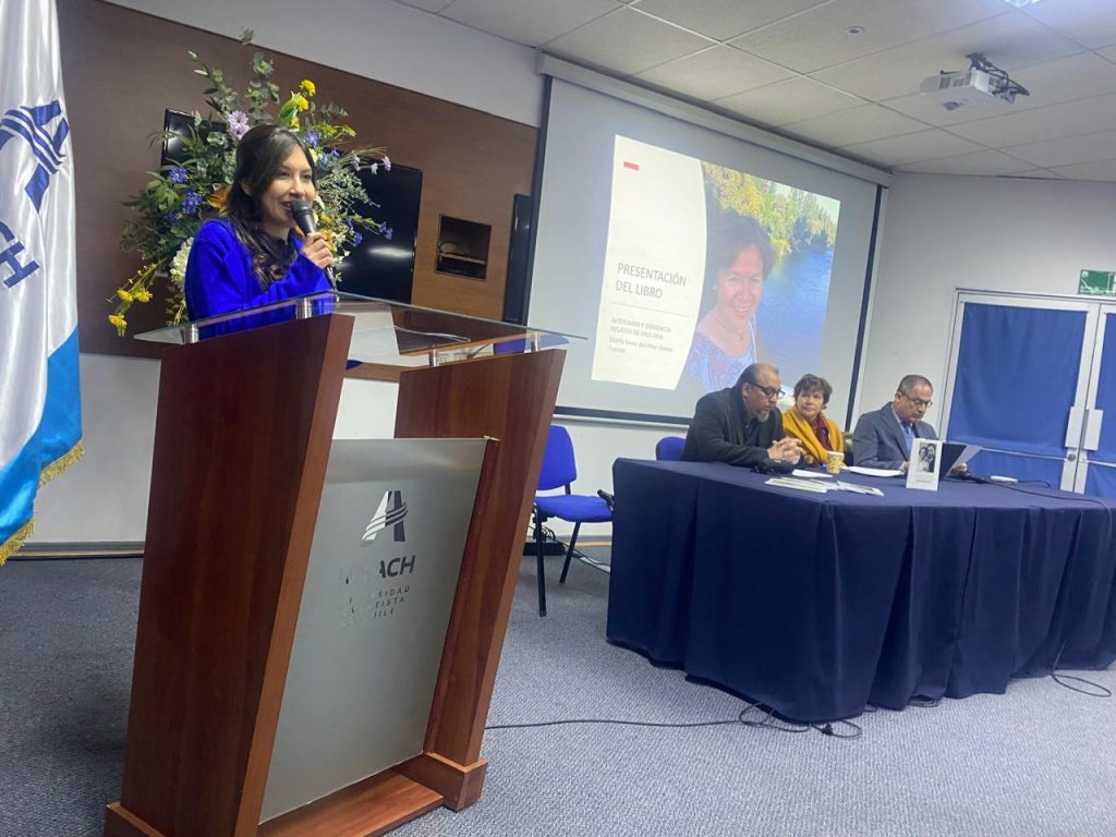 También en esta instancia estuvo presente la autora del libro, María Irene del Pilar Osses Zapata, Asistente Social y ex académica de la carrera de Trabajo Social de nuestra Institución. La autora reflexionó en la experiencia de escribir este libro y compartió con la audiencia momentos y aprendizajes significativos del proceso. Además, hizo entrega de un ejemplar del libro a la Directora de Trabajo Social, la Magister Valeria Villegas, con el fin de que el texto esté accesible para académicos y estudiantes.