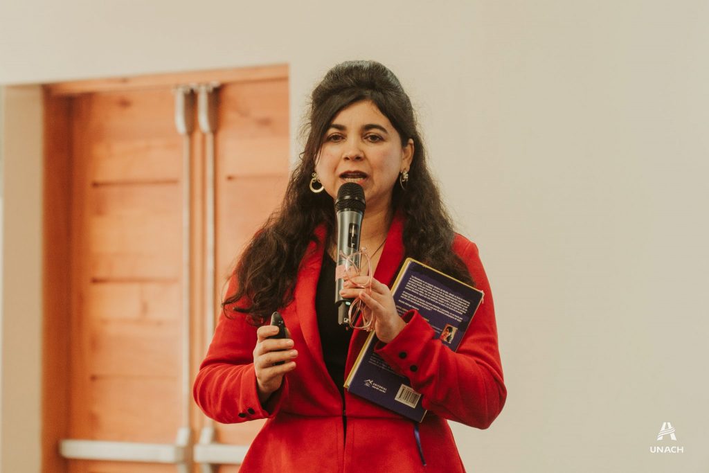 Al finalizar su presentación reconoció ser ex Alumna de la UNACH y realizó entrega del libro Al encuentro de la Infancia, cuentos infantiles y juveniles al académico Osvaldo Caro Caro, en señal de gratitud por el espacio de intercambio de experiencias y prácticas pedagógicas para mejorar la compresión lectora.