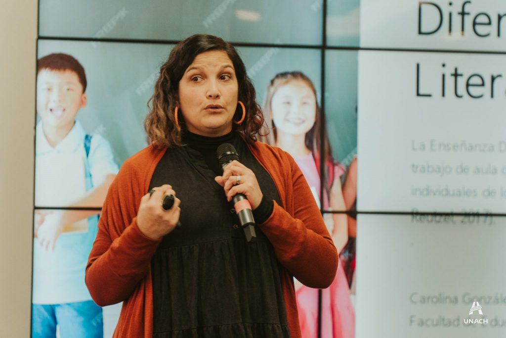 La académica Carolina González Contreras, compartió con los asistentes una ponencia centrada en compartir con los asistentes dos estrategias emergentes en la comprensión lectora; La enseñanza Diferenciada de la Literacidad, que busca en el aula satisfacer diversas necesidades individuales de ellos estudiantes y también la estrategia de enseñanza recíproca para desarrollar el aprendizaje colaborativo donde los estudiantes se turnan para asumir roles que facilitan la comprensión de textos.