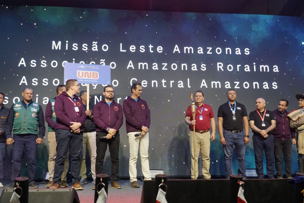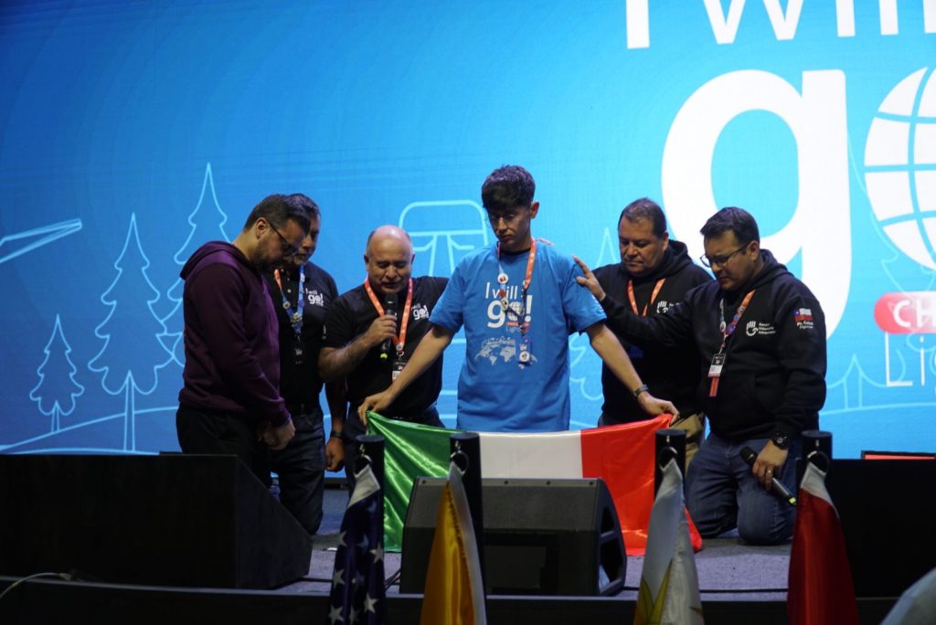 Sin embargo, el punto de inflexión de la noche, el acto que encapsuló el espíritu de continuidad y legado del evento, fue el solemne y emotivo traspaso de la bandera de I Will Go. Este momento, cargado de un simbolismo profundo, no fue una simple formalidad protocolaria. Mientras los presentes contenían el aliento, la enseña que había ondeado como estandarte del congreso en Chile, fue entregada en un gesto que representaba la confianza y la responsabilidad compartida. La bandera, con su mensaje audaz de «I Will Go», cambió de manos, siendo recibida oficialmente por los representantes de la Unión Norte Brasileira (UNB). Este acto significó mucho más que el cambio de sede para el próximo congreso; fue la materialización de un ciclo que se renueva. La UNACH, como anfitriona, pasaba el testigo de una llama que no se apaga, sino que se transporta para ser avivada en nuevos territorios. La bandera que se elevó en Ñuble ahora se prepara para ondear en Brasil, llevando consigo el espíritu de los jóvenes y la promesa de que la misión continúa, expandiéndose desde el cono sur hacia nuevas fronteras. Fue un silencio elocuente, roto por aplausos cálidos y esperanzados, que selló la unidad continental del movimiento adventista juvenil.