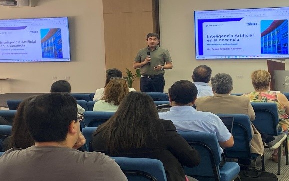 Lunes 12 de enero. Inteligencia Artificial en la Docencia: Uso pedagógico de aplicaciones para potenciar el aprendizaje. Los relatores Mg. Felipe Retamal A. y Mg. Rodrigo Leiva D. profundizaron en el uso pedagógico de aplicaciones como Gemini y Notebook LM, fortaleciendo las competencias en el uso ético, crítico y didáctico de herramientas de IA, integrándolas efectivamente en las prácticas de enseñanza ante los desafíos del contexto universitario actual.
